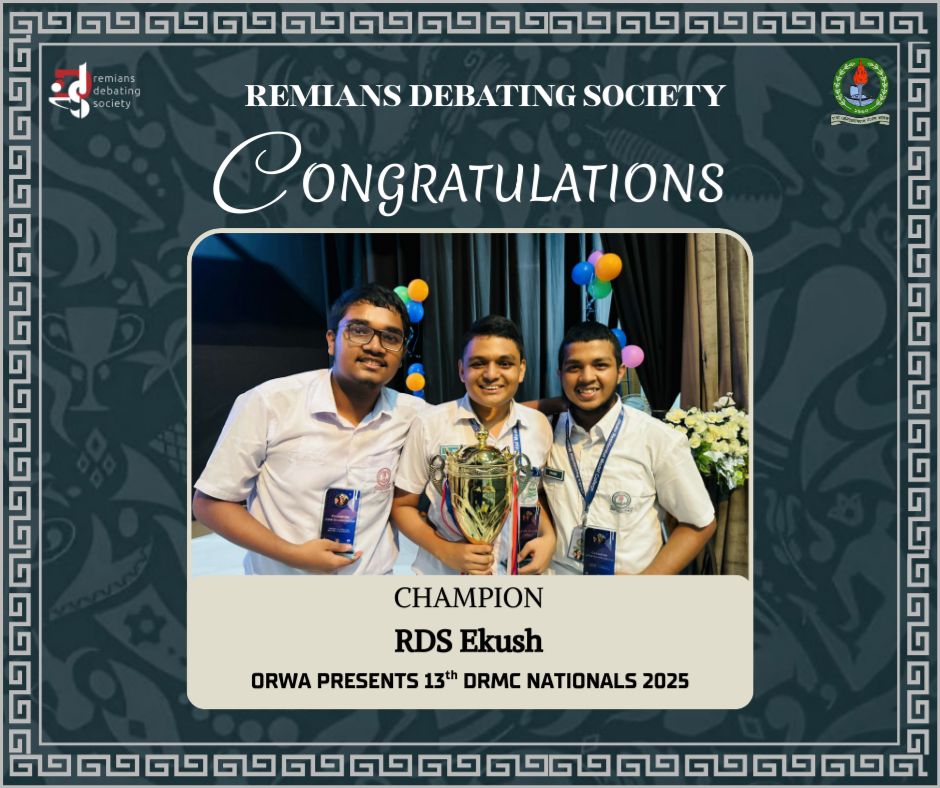 REMIANS DEBATING SOCIETY is the DEBATE CLUB of Dhaka Residential Model College functioning since 1989 with a vision of developing thinkers.